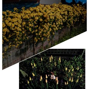 夜のモッコウバラは 闇に浮かび上がった黄色が幻想的✨ チューリップはもう寝ています🌛