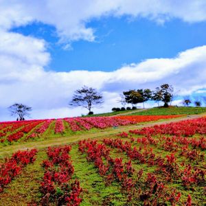 真っ赤な葉っぱとハンモックから見上げた空、ユラユラ気持ちいい〜💕