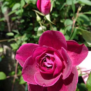 バーガンディアイスバーグ 美しく、元気に咲いています。 暗紅色、ワインレッドがステキです。 アイスバーグの流れをひく、丈夫で育てやすいバラのようです。 2022.6.24 アメリカ山公園