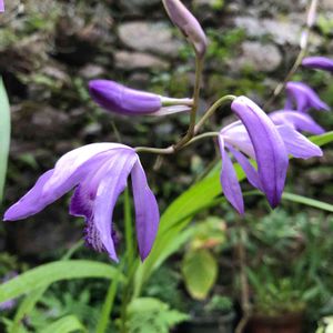 チャボ紫蘭 背丈が並の紫蘭の半分くらい😊