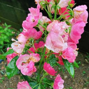 スプレー咲きの薔薇が綺麗に咲いたけど悲しいかな花びらをコガネムシに食べられてちょっと汚くなってた😟 もぉ〜コガネムシめ〜〜🪲😡