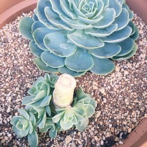 子株ぜーんぶ外したらこんなに沢山💦💦 パウダーブルー大好きだから全部立派に育って欲しいな♡ 大きめリメイク缶が完成したので植え替えラッシュだぁ( ´ ▽ ` )