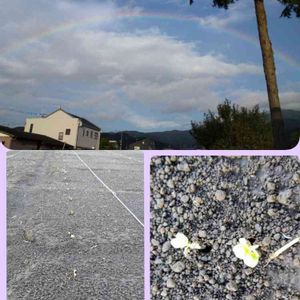おはようございます^_^ 今朝🌈虹見ました❗ 大きな🌈 あっと言う間に消えてしまいました😔 5日に種蒔いた大根発芽してました! かわいい💞😆