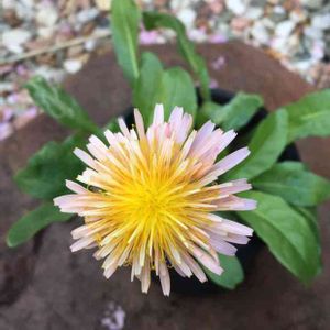 Taraxacum albidum シロバナタンポポ 在来タンポポです もう咲いてる… 6年ほど前にタネをばら撒いたのですが運良定着したのは1株だけでした。 毎年この株のタネを採種して鉢に撒いてますが、発芽率は良いのにしっかり育たない… 意外に難しいタンポポの鉢植え(´・ω・`)