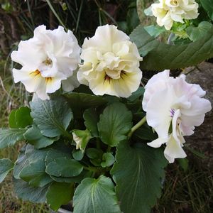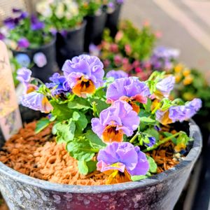 こんばんは🌃 日が落ちると急に空気が冷たくなりますね🌡️⤵️ 天気予報によると火曜日からぐっと寒くなるそうなので、そろそろ簡易温室の準備をしなくてはと思いつつ、腰痛と痛みによる微熱で今日も何もできませんでした💦 明日は有休を取っているので、午後からでもぼちぼち頑張ります💪 寄せ植え&花壇植えを待つパンジー&ビオラたちの中から、本日は花日和さんの八重咲きパンジー『アチュード』とtef*tef*さんのオリジナルビオラ『スモーキーベール』を📷投稿いたします。 1枚目📷:ふわふわの八重咲きが魅力的な『アチュード』。半開きの時のくるくる巻いた花びら(右上📷)も可愛い😆🤍 2枚目📷:名前の通りスモーキーな色合いが素敵な『スモーキーベール』。tef*tef*さんらしい大人可愛いビオラです🩵🩶