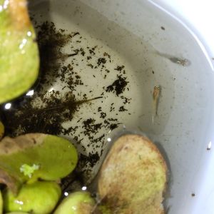 ビックリ😯何処からきたの??? 小さい5ミリくらいの稚魚が…根っこに付いてたのかな~ メダカならいいけど 育つかな😊🤔