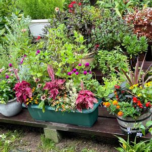 最近作った寄せ植え達を 並べてみたよ。 昨日の午後の撮影。 眩しい日差しにお花達が、 キラキラ光って、 ほんと、うっとりするぐらい。 カレックスやコルジリネなどの しなやかな線のリーフ達が、 寄せ植えを美しく見せてくれる のを、再認識💕