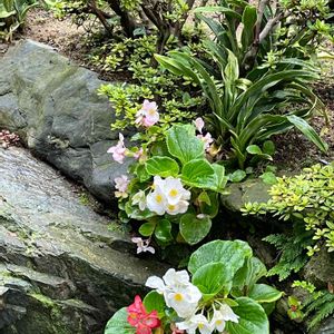 ベゴニアさん、ナイスです👍 昨日投稿した、新色のベゴニアが 生まれた現場です。 去年からこんな感じに庭石の間から 咲き出したこぼれ種のベゴニア。 玄関から出ると、目に飛び込んでくる 一等席。 なんて、侘び寂びのわかる いい子たちなのでしょう。