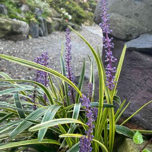 おはようございます☀ 肌寒い朝。 でも、今日は暑くなるみたい。 ヤブランのお花が咲いてます。 薄紫色の風情がある姿ですね。 右上には、石ガエル🐸君のお背中 が映っています。 毎日、変化するお庭をここから、 ジィーと眺めているんですね。