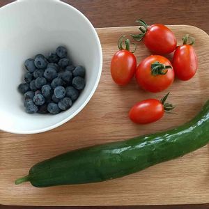 昨日は雨が降る予報だったので、赤くなったミニトマトを早めに収穫。 ついでにきゅうりとブルーベリーも。 きゅうり、初挑戦。 うん、ちょっと形悪いけど、パリパリしておいしー❗️ 今年のミニトマトはフルティカもアイコも皮は固いけど甘いです❗️ 二年目のブルーベリーも去年は育てるのを優先して花をあまりさかせなかったので、今年は豊作🌼 よきよき👍️