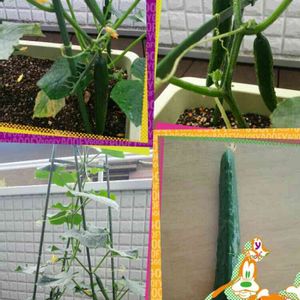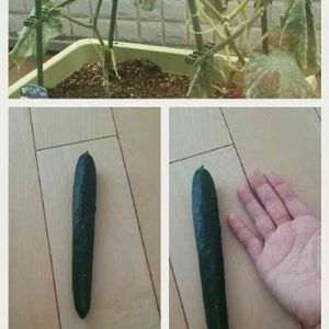 初収穫。 ミニきゅうりなのですか どのくらいの大きさが正解なのかわからず 一番果は早めに獲った方がいい、となに見ても書いてあるので とりあえず手のひらサイズで収穫してみました。