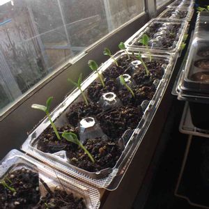 先週、蒔いたキュウリ『一番星』の芽が出てきました☺️