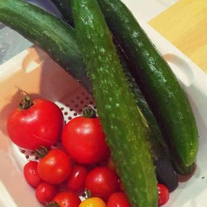 おはようございます(^^) 朝から晴天☀️暑くなりそうだけど やっぱり気持ち良い♫ 今日の収穫😊 雨続きでもよくぞ頑張った! ミニきゅうりが思ったほど収穫出来ず⤵️ 毎日お漬物食べれる予定だったのになぁ〜 ( ˊ̱˂˃ˋ̱ )。。。 いただきます🙏🏻