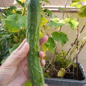 おはようございます☀ 🥒天井向いて育った後の子🥒 あの子は肥料不足だったようです。 この子、綺麗に真っ直ぐです。 身長22cm ウエスト11cm ふふふ 教えてくださったフォロワーさん ありがとうございます😊