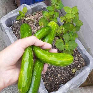 プランターやさい 今朝の収穫です。 雨のあとは、野菜の成長が早いです🥒収穫量も違います。 現在の野菜収穫量💚 きゅうり15本(2苗) なす15本(1苗) オクラ11本(3苗) ゴーヤ14本(2苗) ししとう200個(1苗) プランター菜園