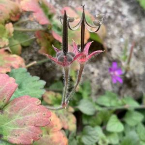 ゲンノショウコ 御神輿わっしょい!! まだ赤花も咲いていました。 *追記 手前のは種がはじける前で まだクルリンとなっていません。弾ける時に種を飛ばすそうです(さぁ~ちゃんより質問が有りました。) 11月中旬撮影 妹picより