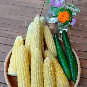 とうもろこし🌽ゴールドラッシュ90 今シーズン最後のベランダプランター🌽収穫 収穫期ギリギリなので未熟粒もありましたが、サラダ🥗でいただくと「とっても甘かった〜😍」