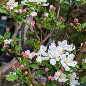 ひめりんごの花が咲き出してます。 毎年咲いて実がなるのですが、去年は少ししか咲かず心配してたけど、 今年はいっぱい咲きました🌸 良かった、良かった☺️