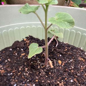 物干し場ガーデンにワタとツノゴマ が一本づつですが育っています。 両方とも上手くいけば素敵な実が出来るので楽しみです😊