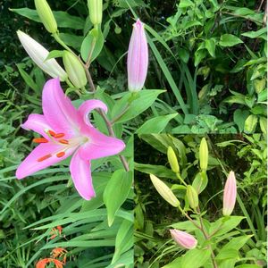 おはようございます😄 私の庭に咲く花達です☺️ ①オリエンタル・リリー 毎年咲いてくれる嬉しいユリです☺️ ②カーネーション 今年の母の日ので、一度花が小休止しましたが,また,蕾が上がってきました☺️ 左上、花が咲いてきました😉 ③オニユリとアガパンサス やっと、蕾が2個開きました😄 ④サクラフブキ(桜吹雪) 前回投稿時のが、やはり蕾で,だいぶ膨らんで来ました😁 どんな花が咲くのか楽しみ😊 ⑤バラ🌹 曇り空のバラ🌹 🏷️金曜日の蕾たち 🏷️金曜ローズショー 🏷️桃色百花繚乱 参加します。