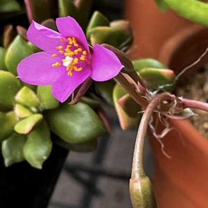多肉植物 ①②③ 桜吹雪がやっと咲いてくれました パッと開いた所撮れません😅 ④ ピンキーも綺麗に咲いてくれました ⑤ポーチュラカも多肉植物だそうですね 綺麗に咲いています