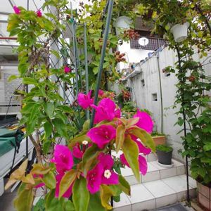 ブーゲンビリア😸とブラックベリー😱 ブーゲンビリア、白いお花が咲いてました😁 母が育ててる、可愛いけど苦手な子😅 トゲトゲでなんど引っ掛かれたことか😓 トゲさえなければ、うちでも育てたい😁 そして…後ろのブラックベリーの量が…怖い😅