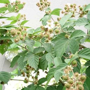 ブラックベリーが実をつけ始めましたよ お花も可愛くて💕切り花としてキッチンに飾ります👍😊