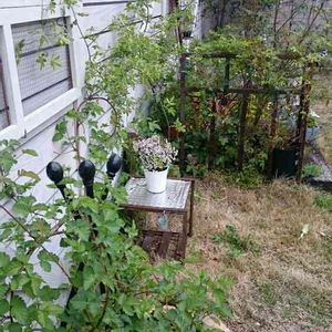 ブラックベリー 15年以上前の苗です。 一時は 大きく育ち実もどっさりなったのですが、今は 色々な植物に押され 静かに育っています。