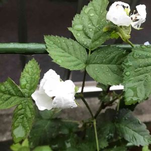 🌈ブラックベリーの花🌈 冬物片付けに 半日かかりっきり💦 一休みで ベランダの植物チェック😅という サボリ…… ブラックベリーの花が咲いてきました。🧡 一応 受粉のお手伝いして 今年は 実を食べれるかなぁー🙏🙏