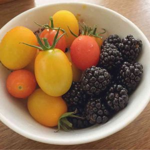 本日の収穫 * とれたてアイコ、美味しい♩︎ ブラックベリーは、きのうまたボールいっぱい収穫できました。 総収穫量1kg超えましたー 今年も豊作です☺︎︎