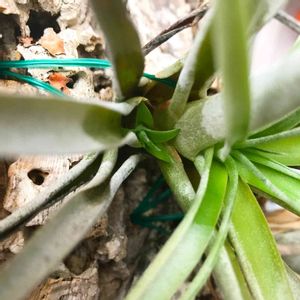 ブルボーサが葉を増やそうとしています🌿 手伝いたくなりますが、触ると意外と硬いです😋 世話がなかなか大変なので、ここ数ヶ月、チランジアの数を増やさないようにしてますが、ブラキカウロス(画像、青い箱の中)を久しぶりに100均で購入しました。 数々のミイラ状態のチランジア達の中、1人頑張っていたので、つい…😅 ハリは戻ってきた感じなので、マイペースに成長してほしいです🐌🎶