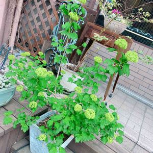 ぬぬぬ。 楽しみにしていた土植え二年目のスノーボール。 去年は一輪。 今年は、お花いっぱいついたのに全部緑……( ꒪⌓꒪) これから白くなるの?