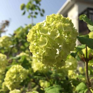 スノーボール ビバーナム、咲き始めはこんなグリーンで大好きです✨だんだん大きくなって、白い花がたわわになります