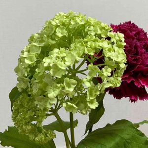 今日のお花。頂いたアレンジのスノーボールを挿してから3年ほどたって 昨年4月やっとお花を2つ付けてくれました✿*゜ 左下が咲き始め 右上は終わり頃です。 色の移り変わりが楽しめました(* ॑꒳ ॑* )♡*。