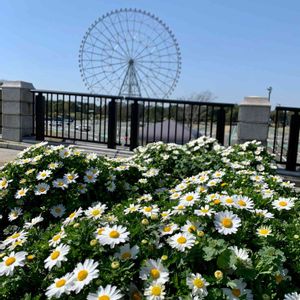 花散歩🚶♀️@葛西臨海公園💠 ノースボールと、向こうに大観覧車 もちろん観覧車は🎡動いてませんでした 東京のハズレのせいか (隣は東京ディズニーランドの最寄り駅です) 人も少なくゆっくりできます🚶♀️ 夏は海水浴もできるし、 羽田の離発着飛行機✈️も 遠目だけど見られますよ☺️