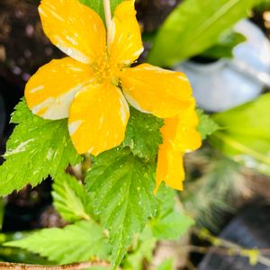 娘の知り合いのお宅に伺い、斑入りのヤマブキをいただいて来ました。 ひとつだけ返り咲きのお花が咲いていました🙋♀️ 暑さに負けないように、ビタミンカラー💛