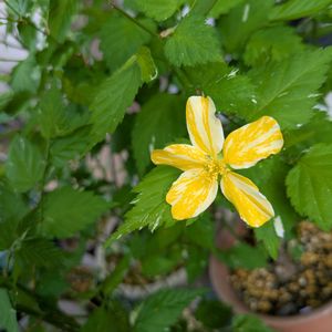 斑入りの山吹が咲きました。 もう何年も経ちますが、大きくなりません😅 狭い我が家にはちょうど良いです👍