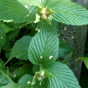 今日の花 ヤマブキ 我が家の一重の白いヤマブキは実がなってました🟢 もう1つの斑入りちゃんは新芽が綺麗に出かかったところ〜🌿🤍💚