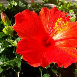 ハイビスカス🌺の蕾が、あと少しで開きそうです。真っ赤とビタミンカラー 金曜日の蕾たち