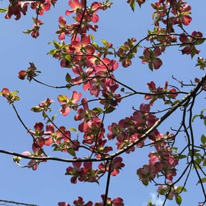 余りにも綺麗な青空だったので空ばかり撮りました 赤いハナミズキが踊っています💃