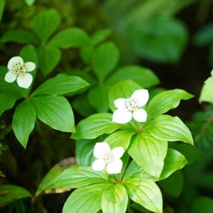 ゴゼンタチバナ(御前橘) 亜高山から高山の登山道脇に群生しています😃 白い花(苞)がよく目立ちます😊