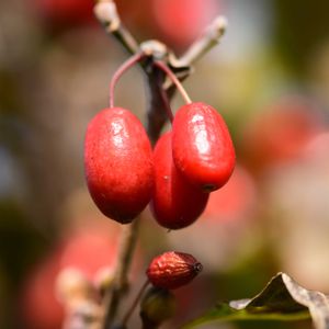 「サンシュユ」 鈴なりに 真っ赤に熟れている 長居植物園2025/11/7