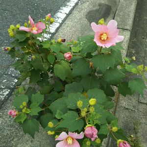 今日わ😃 時々、🚕で通る道路です 今日、初めて見ました😍 コンクリートのすき間から、いろんな花が咲いてるのを見ましたが、フヨウは初めてです 明日の🌀心配です 今年は🌀が多いですね😱