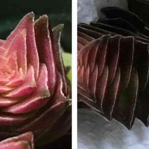 大好きクラッスラの欲しかったコ😍 茜の塔錦(暁の峰)も目についてお値段に悩みつつ、結局連れ帰りましたが、どう見ても葉っぱが同じように見えない🤔 どっちも名前札付きなんですけどね。 斑入りは徒長するから?