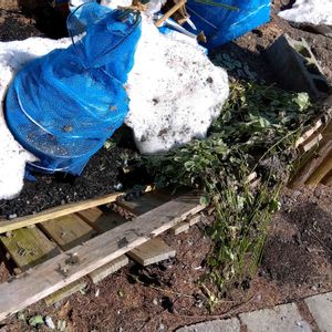 この冬、一番の困ったちゃん💦 柵がひしゃげました😥 直す気力もない💦 レンガ積むかなぁ? くっつけないとダメだべか🤔 どうせ雪で壊れそうだから、あえてそのままでもいいんでないべか笑 写真2 すごく季節外れな感じですが、アネモネ給水しました!
