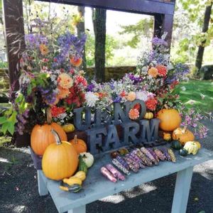 ウエルカムフラワーも 秋らしくハロウィンパンプキンと カラーコーン