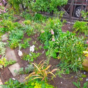 ボーダーガーデン横の寄せ植えも これが最後 ノームが可愛い
