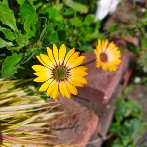 ジニアの影で咲いている オステオ 一年草は通年咲いてくれるのが 嬉しいですね