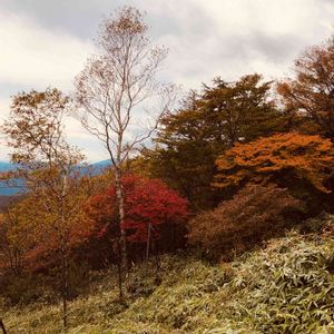 10月18日、混雑を避けるため、すこし早いかもの?、奥日光男体山の裏側、紅葉の名所「瀬戸合峡」を目指し、日光霧降高原回って、出かけてきました❗️ 霧降高原キスゲ平附近から見た、紅葉🍁❗️