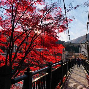 11月13日、数年ぶりに、トイプーのせりちゃんと夫婦の一匹と二人で、go toトラベルを利用して、那須へ一泊旅行に出掛けました❗️ その道中、鬼怒川温泉♨️鬼怒楯岩大吊橋・五十里湖湖畔のほそいで食事後に、五十里湖を経て、塩原温泉郷♨️♨️へ 箒川沿いに下って行くと、塩原温泉郷の中心街の古町に、人だかりを発見❗️ 後で調べて知ったのですが、古町の箒川に架かる「紅の吊り橋」と呼ばれる、紅葉🍁🍁🍂の名所だったのです❗️ さっそく町内に沢山設けられた、無料駐車場に車🚗を止めて、5分ほど歩いて、川沿いの紅葉🍁🍁🍂を見てきました❣️ 光に包まれ、彩り豊かな輝くもみじ❣️